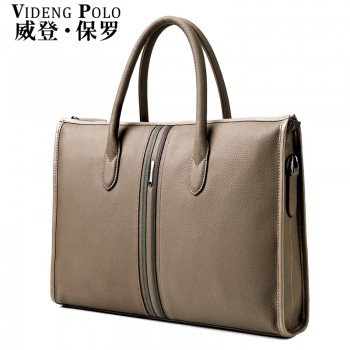 威登保罗男士手提包横款商务真皮男包公文包休闲男人单肩包斜挎包