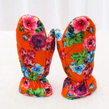 冬季加厚保暖手套全指女韩版学生骑车羽绒棉滑雪花布手套ps8