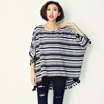 加肥加大码女装秋装2016新款潮胖mm短袖流苏T恤女蝙蝠衫雪纺上衣